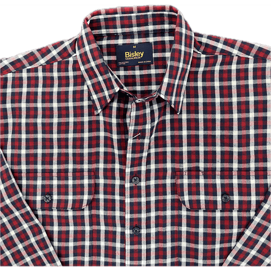 Bisley Flannelette Long Sleeve Shirt - Wine/Navy Check
