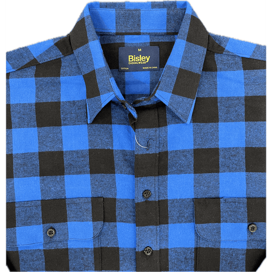 Bisley Flannelette Long Sleeve Shirt - Royal/Black Check