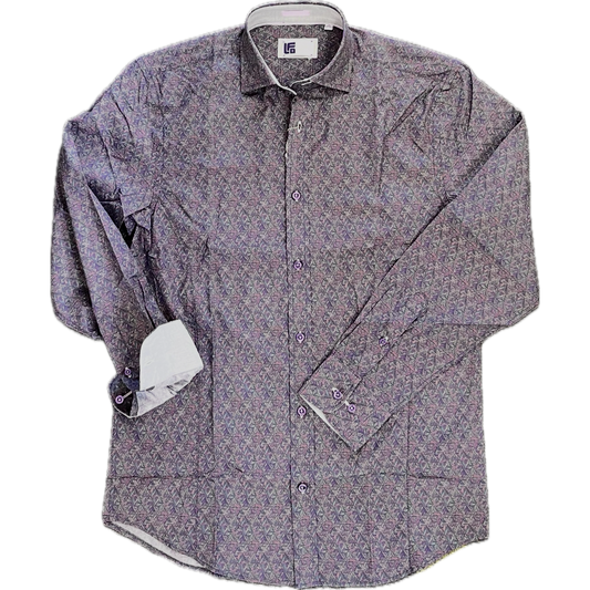 'Lichfield' Lifestyle Long Sleeve Shirt - Mid Grey/Sky/Wine