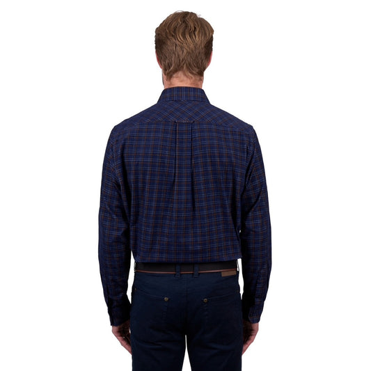 Thomas Cook Thermal Brushed Cotton Shirt - Navy/Tan