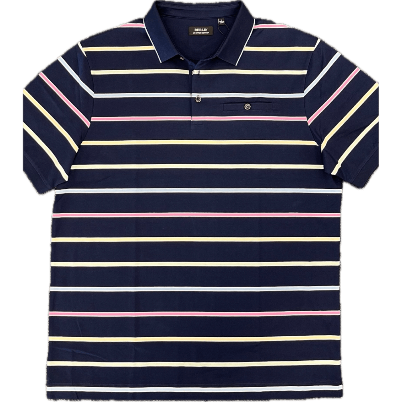 Berlin polos - because detail matters...Jetted chest pocket, side gussets, perfectly matched stripes and a fine ribbed sleeve trim and collar with tipping.