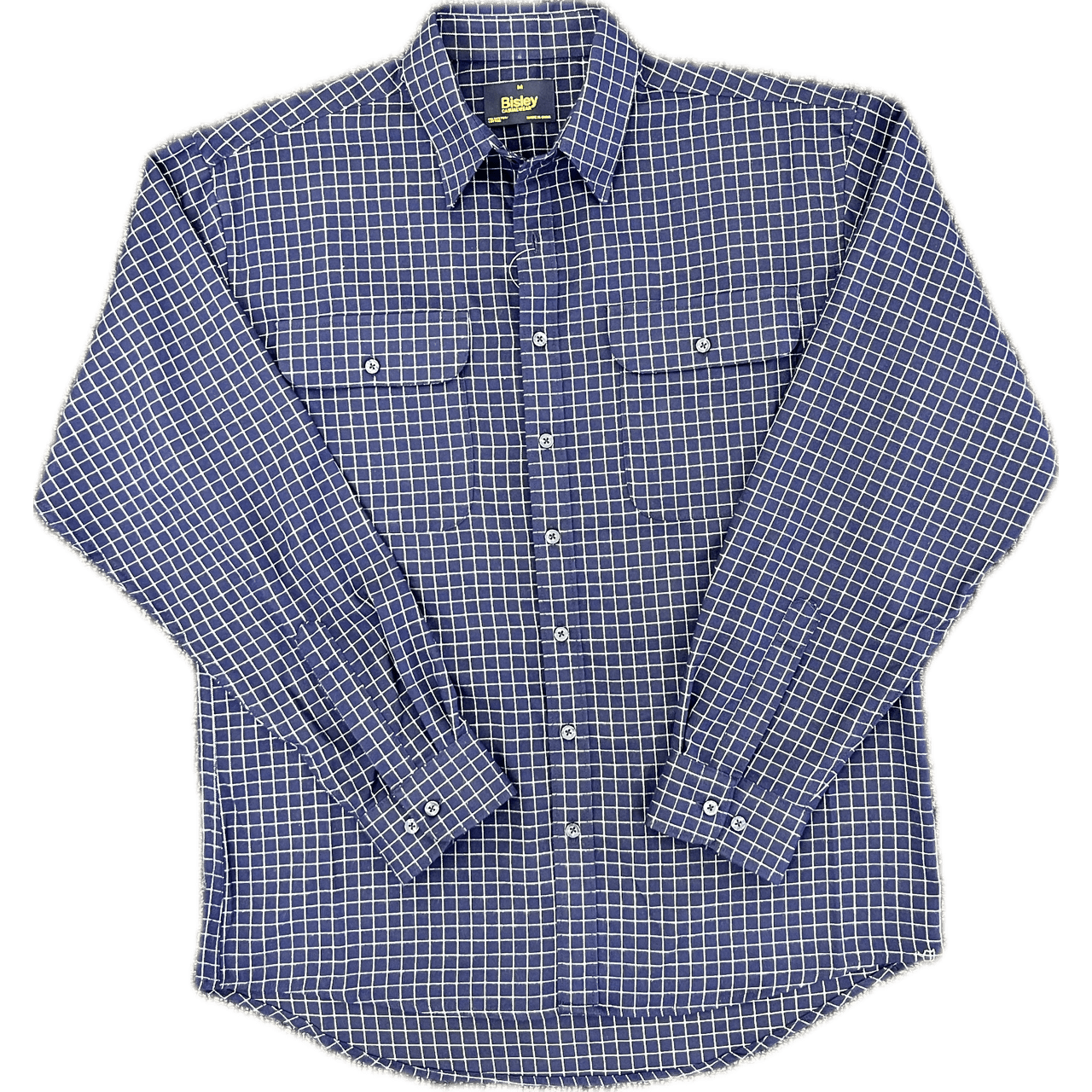 Bisley Flannelette Long Sleeve Shirt - Navy/Cream Check