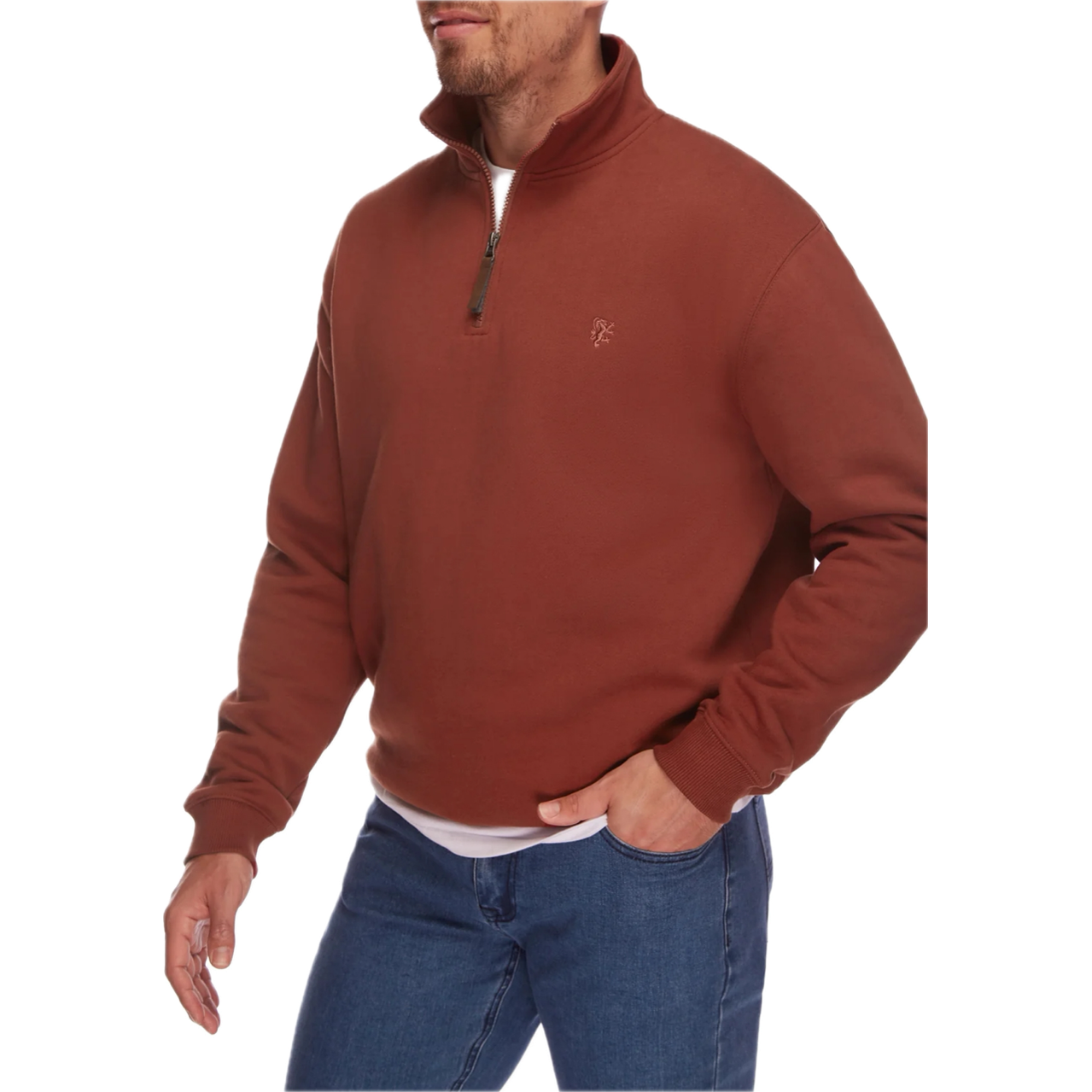Cotton/polyester brushed inside, 1/4 zip sweatshirt.