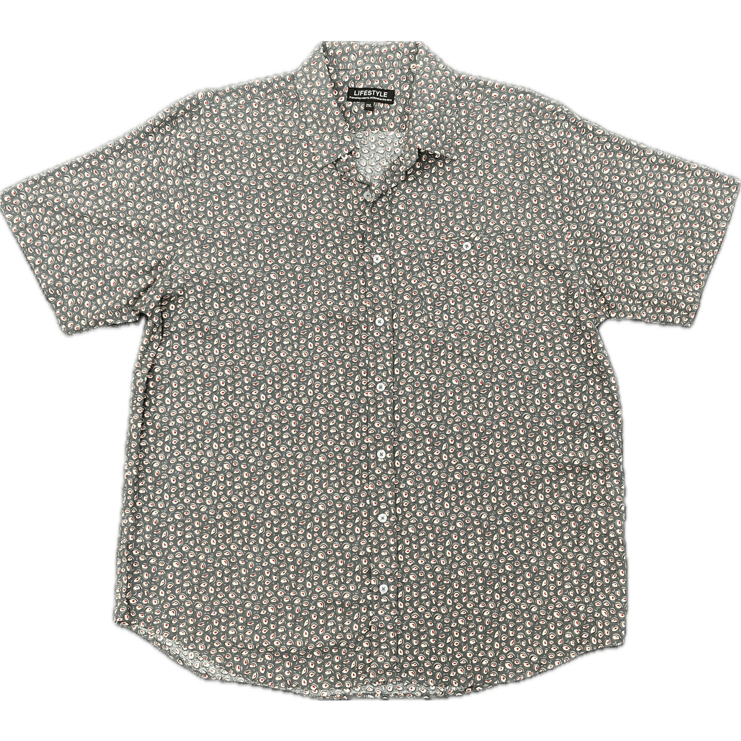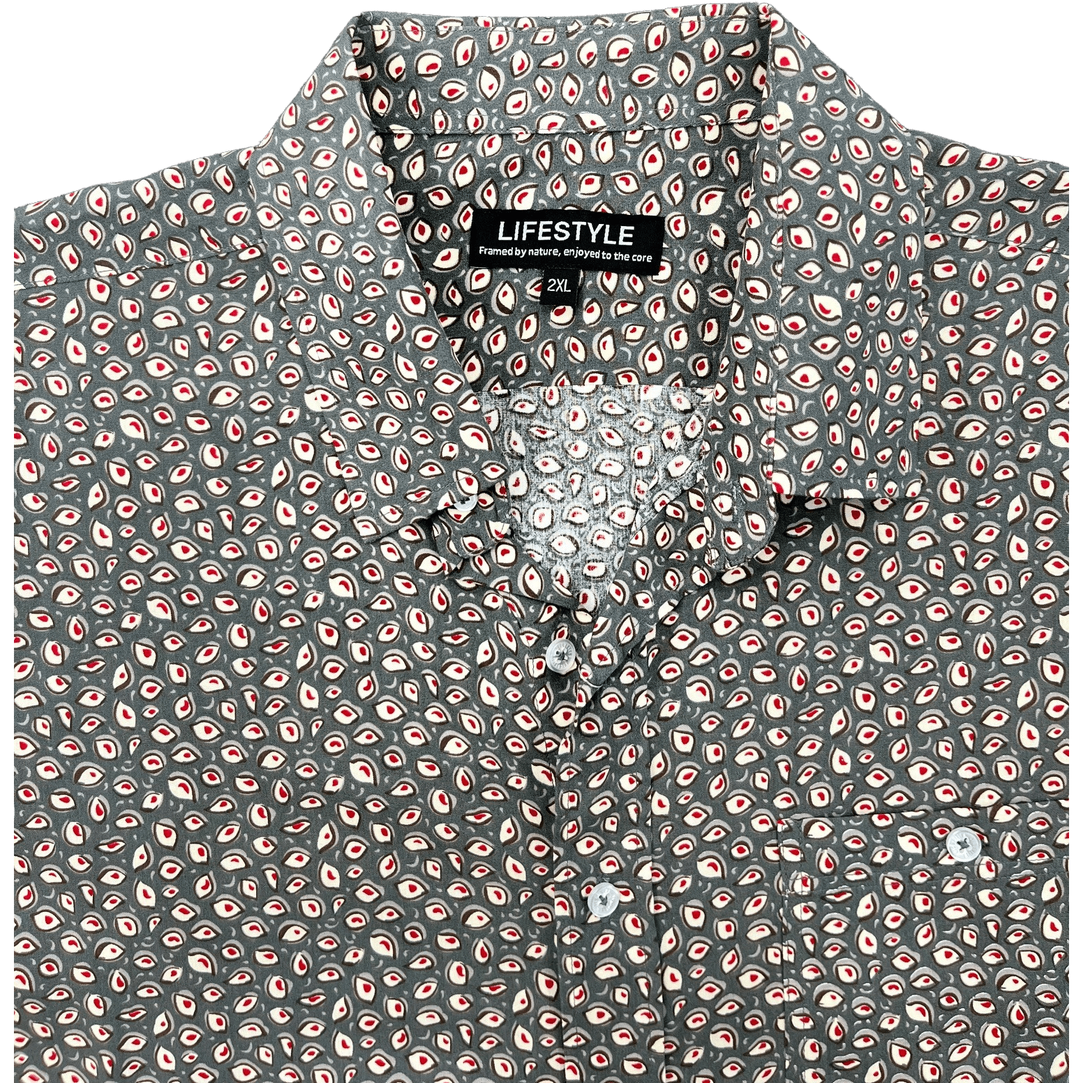 A generous fitting shirt (with a pocket) in a neutral toned modern print.