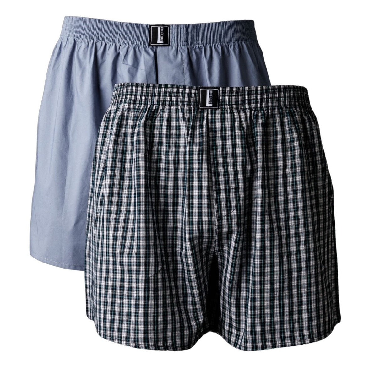 Lichfield 'Downunder' 2 pair pack boxer shorts - 100% soft woven cotton, hidden fly front and notch leg - ideal as underwear or sleep shorts.