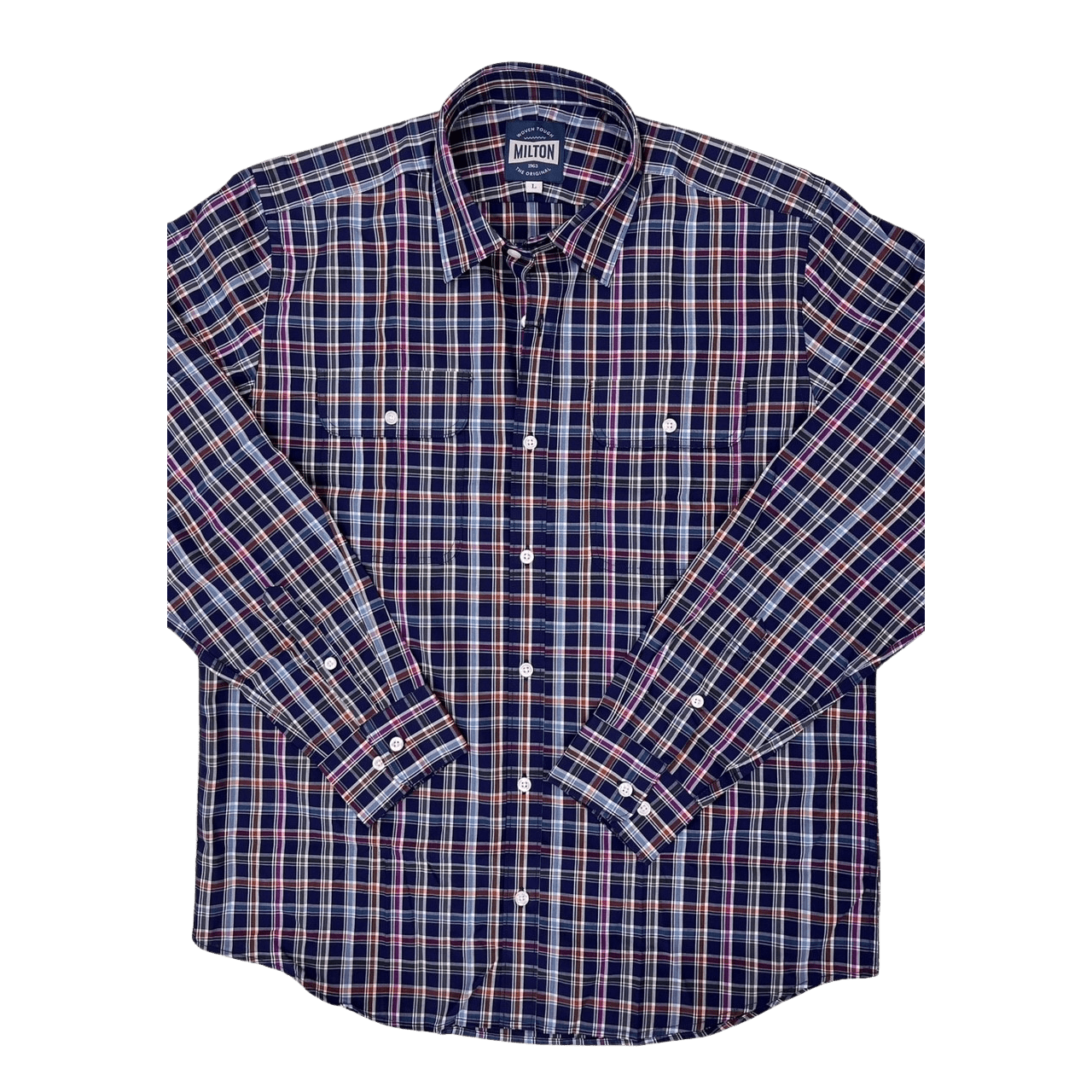 Stay stylish and comfortable with our Milton Long Sleeve Shirt in Blue Check.