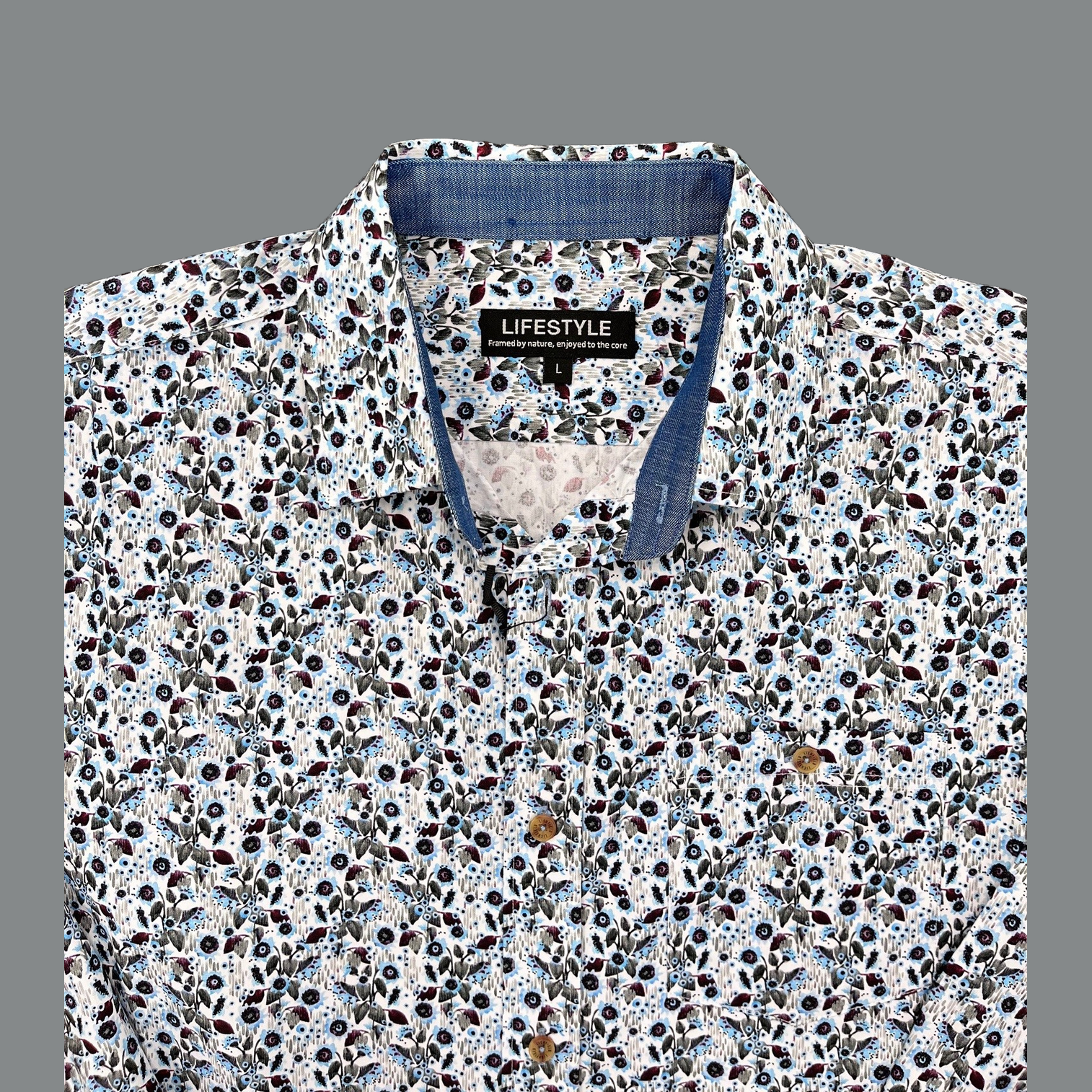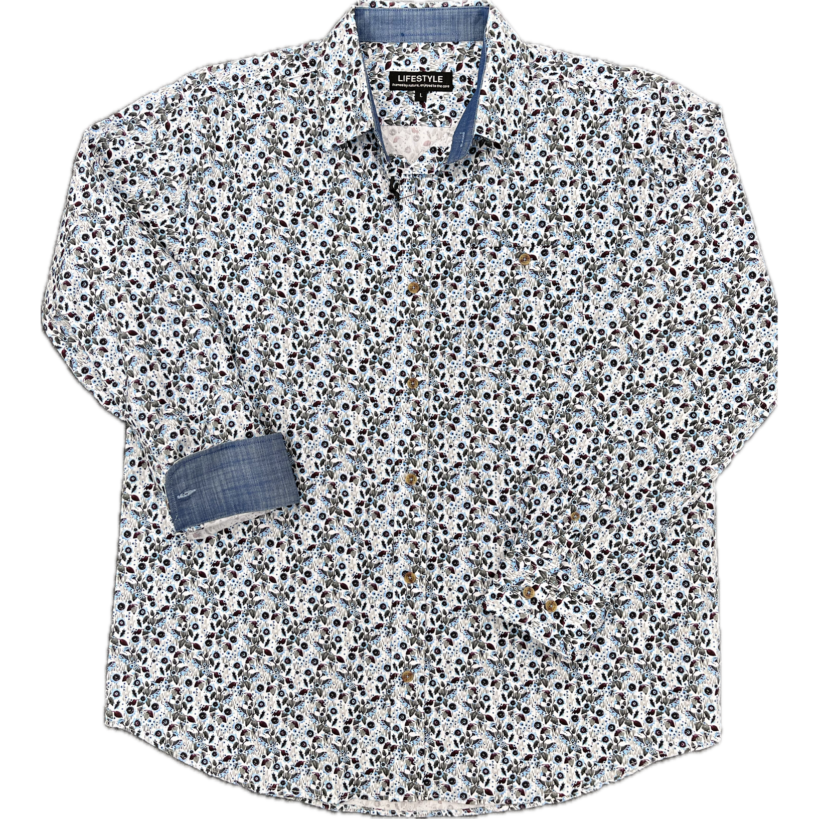 Trimmed with a denim look finish on the inside of cuffs and collar and has a pocket - what's not to love about this shirt?